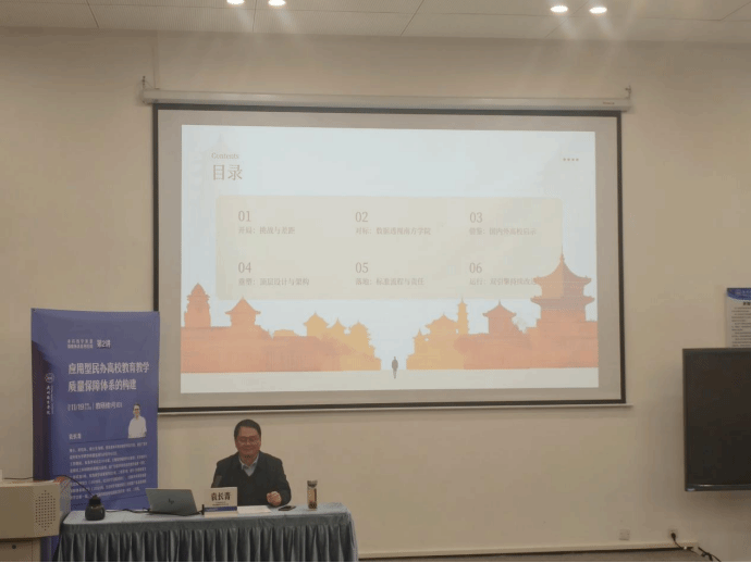 以面临的共性挑战为切入点,袁长青主任从生源吸引、师资队伍、产教融合、内部质量监控等方面分析了当前民办高校发展的关键痛点,并结合具体数据进一步指出我校教学工作的薄弱环节与改进方向。针对破局路径,袁主任分享了国内外高校的先进做法,提出“三级联动、多元共治”的质量保障架构体系。他指出,要明确各层级职责分工、推动多主体参与,建立目标标准体系、规范教学管理流程、健全责任追溯机制,同时强化评教作用,完善自我评估与第三方评价,稳步推进质量信息公开。他还强调质保体系的良性运转离不开坚实的组织、经费和条件保障,更需要长期培育质量文化。培训会后,与会教师围绕课堂教学改进、质量文化培育等踊跃提问,袁主任逐一详细解答,提供了专业见解和可行思路。
